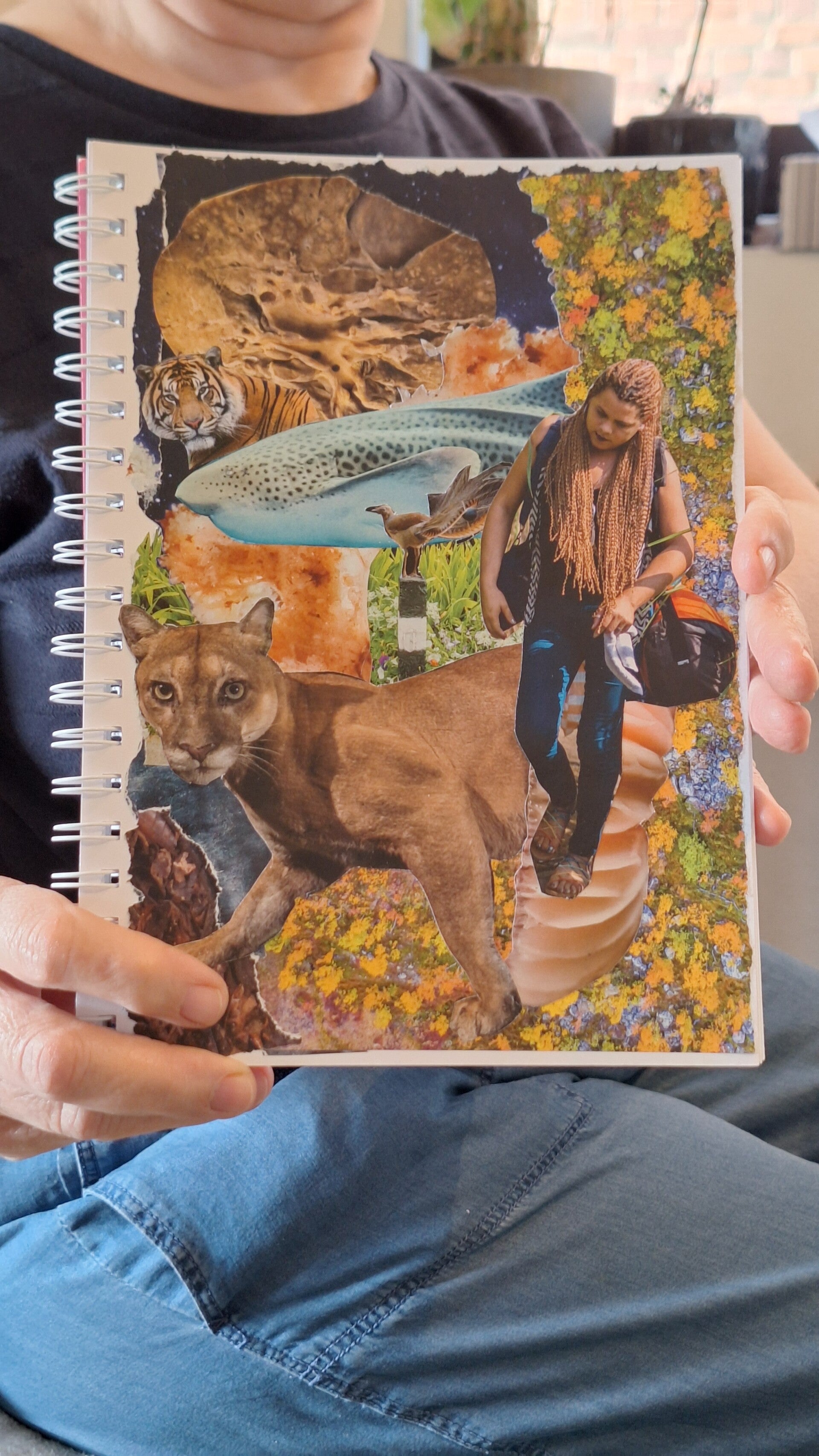 De workshop beeldcollage was een combinatie van creativiteit (papier, tijdschriften, scheuren plakken, ...) en gezelligheid . Iedereen werkt op zijn eigen manier aan een creatie, terwijl er volop ruimte is voor lachen, praten en ontspannen. Je neemt je werkje mee naar huis met een ervaring om nog lang op terug te kijken. Andere workshops zoals zendoodle, stipdoodle, neurografisch tekenen,... volg ik ook, het is zo rustgevend. Rebecca die ons begeleidt is een toffe vrouw, behulpzaam, enthousiast, ze doet dat super, ze zorgt dat iedereen zich thuis voelt in de workshops, bedankt Rebbeca, blij dat ik jou en de workshops heb leren kennen, de workshops zijn top en telkens ga ik blij naar huis.